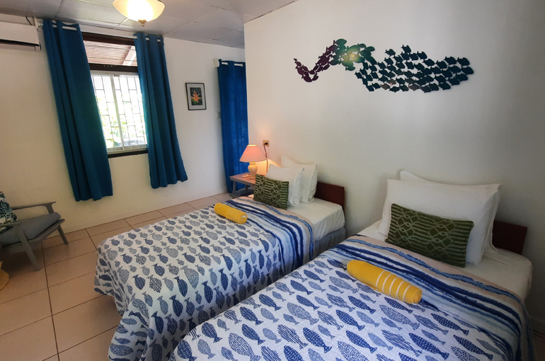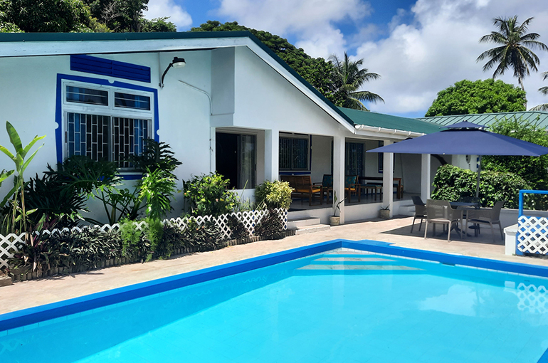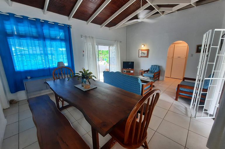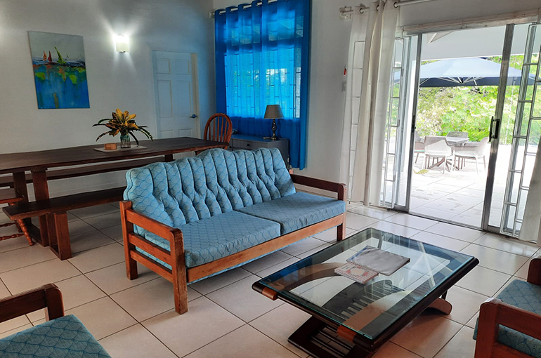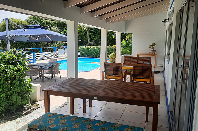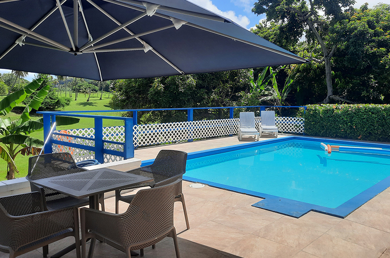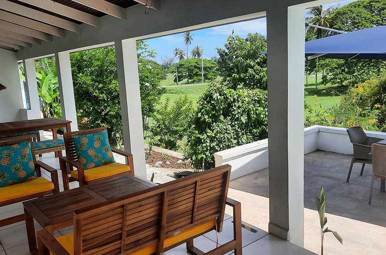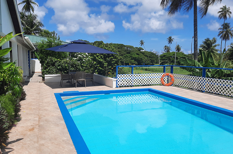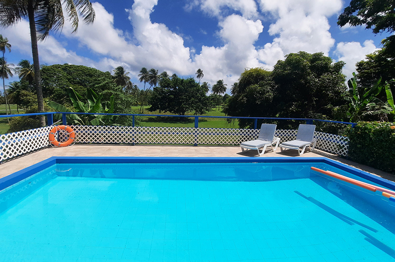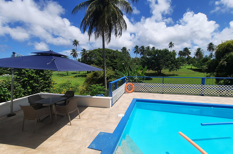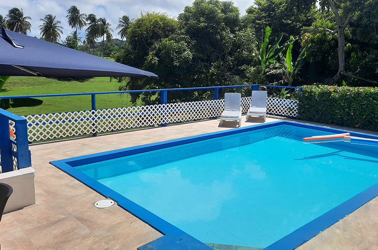 Relax with the whole family and friends at the very private and peaceful Fair View Villa. The villa sits on extensive grounds filled with tropical foliage and fruit trees for guests to enjoy when the fruits are in season. The villa is spacious and comfortable and is designed for Caribbean outdoor living centred around the pool and patio with views of the Mt. Irvine Golf Course. Fair View comfortably sleeps eight people in four separate bedrooms which are all air conditioned; three have en suite bathrooms. It is located within walking distance to Grange Bay and Mt Irvine Beach. Also walking distance to the tourist facilities and restaurants at Buccoo.Property details | |